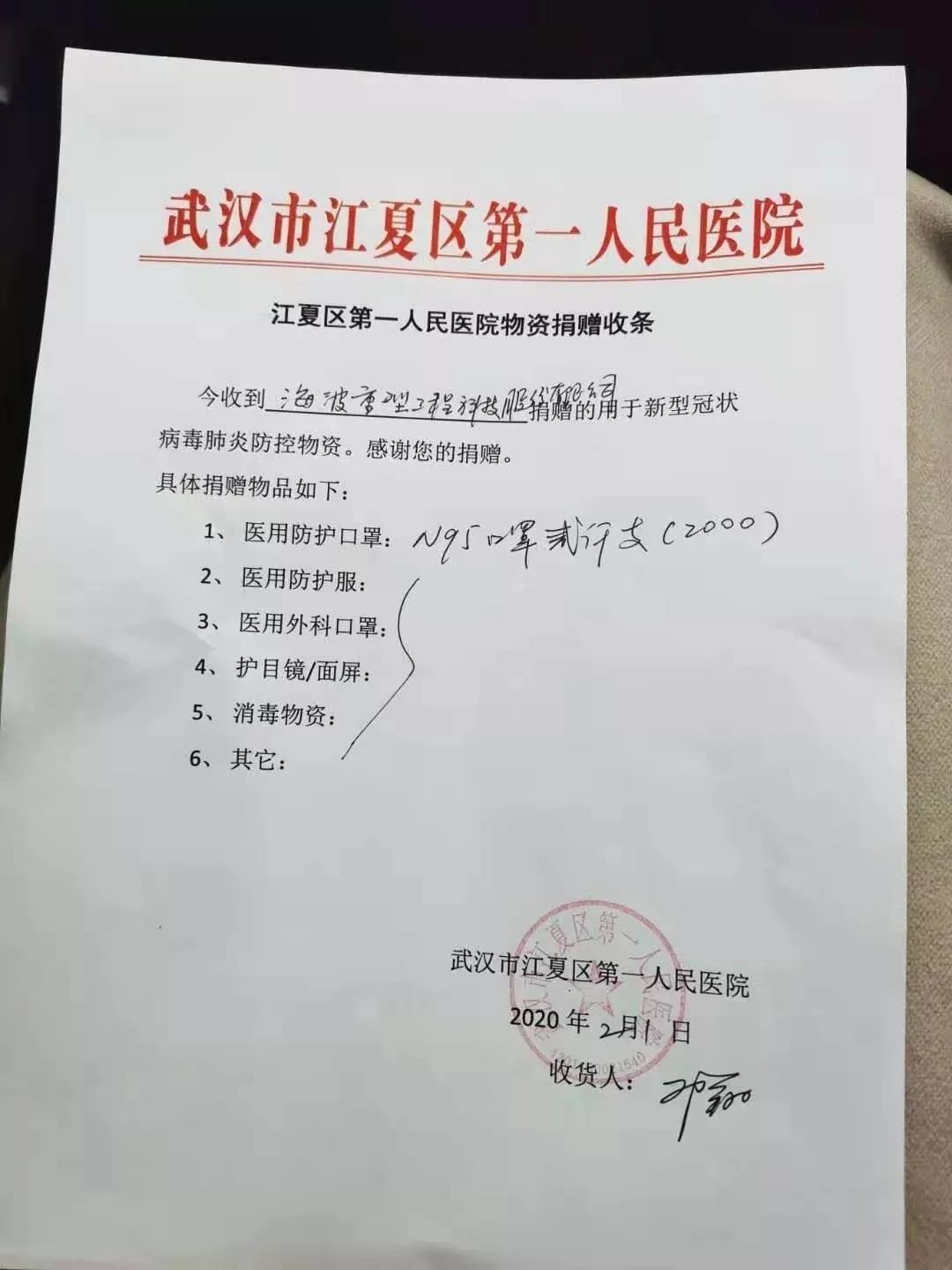 全國(guó)一盤棋,勠力齊戰(zhàn)“疫”。為支援新型冠狀病毒肺炎疫情防控工作,2020年02月01日,海波重型工程科技股份有限公司向武漢市江夏區(qū)、武漢市經(jīng)濟(jì)技術(shù)開發(fā)區(qū)(漢南區(qū))相關(guān)部門共計(jì)捐贈(zèng)現(xiàn)金及物資210000元,其中N95口罩2000只,定向捐贈(zèng)給武漢市江夏區(qū)第一人民醫(yī)院,為抗擊新型冠狀病毒肺炎疫情貢獻(xiàn)綿薄之力。