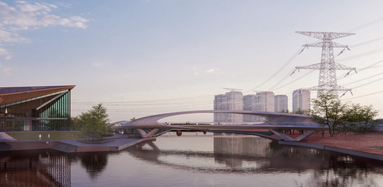 鳳鳴橋項(xiàng)目位于新吳區(qū)伯瀆河公園東側(cè),伯瀆河公園蜿蜒長(zhǎng)達(dá) 3.7 公里,坐擁便利的地鐵交通(開(kāi)發(fā)中)和豐富的景觀及人文資源,是城市級(jí)濱水公共空間。
