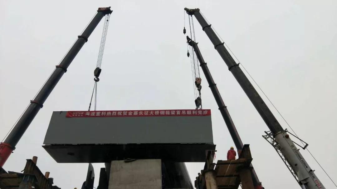 ? 金寨項目經(jīng)過海波重科各級員工的共同努力,鋼箱梁首吊順利完成,為該項目的順利實施奠定了基礎。海波重科愿為金寨縣的建設貢獻自己的一份力量!